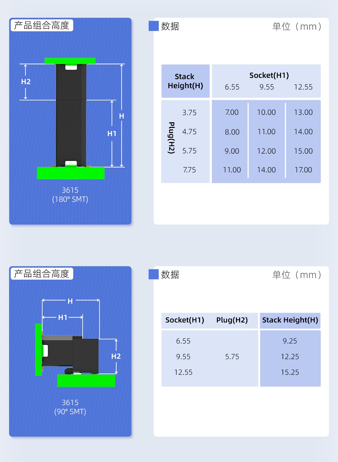 该产品配备导向柱与防误插结构,确保精准对位;支持多种组合高度,适配不同堆叠需求;并通过固定片设计增强在PCB板上的安装稳定性,广泛应用于自动化设备与工业电脑等关键领域。