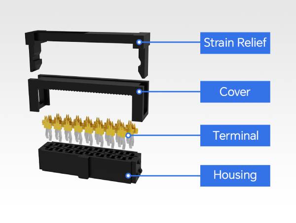IDC W/T 应力消除装置,其中应力消除盖可消除应力,防止江南平台客服因振动或外部拉动而松动,并增强公头和母端配接期间的机械稳定性。