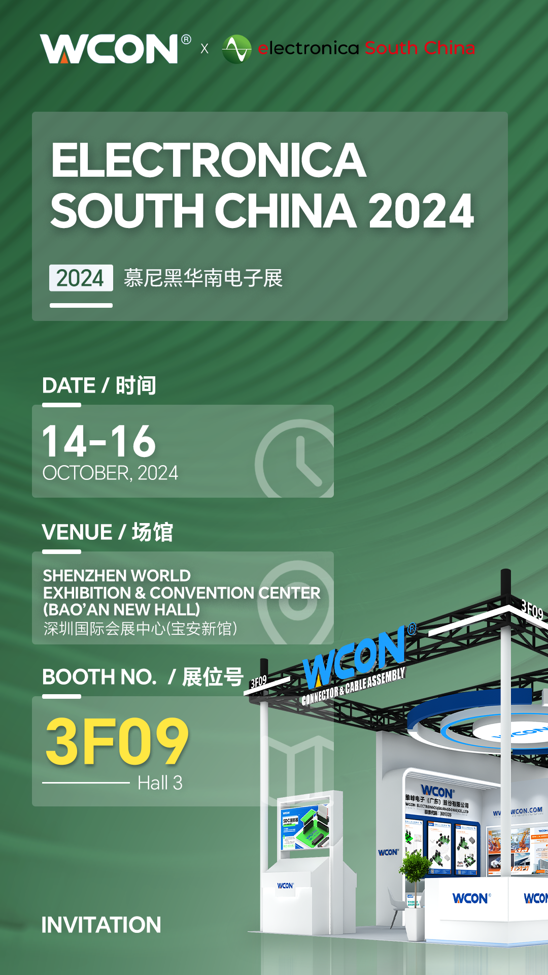 WCON位于 3号馆,展位号 为 3F09。