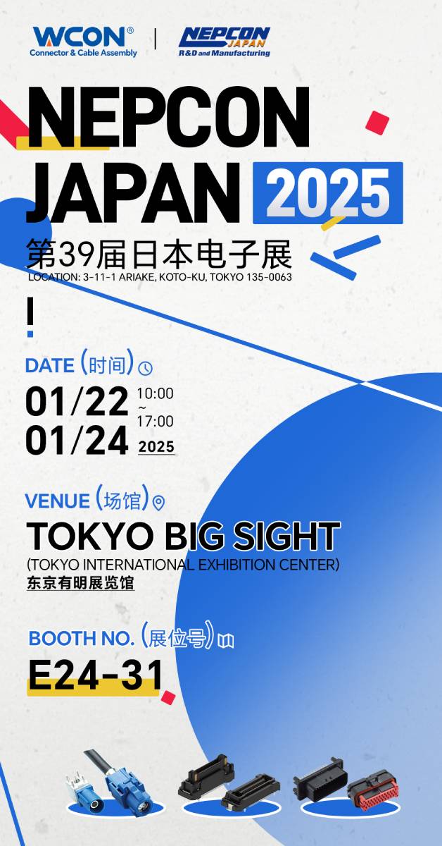 Nepcon Japan 2025(第39届日本电子技术展)将于1月22日至24日在日本东京有明展览中心举行。 WCON在E馆E24-31展位!
