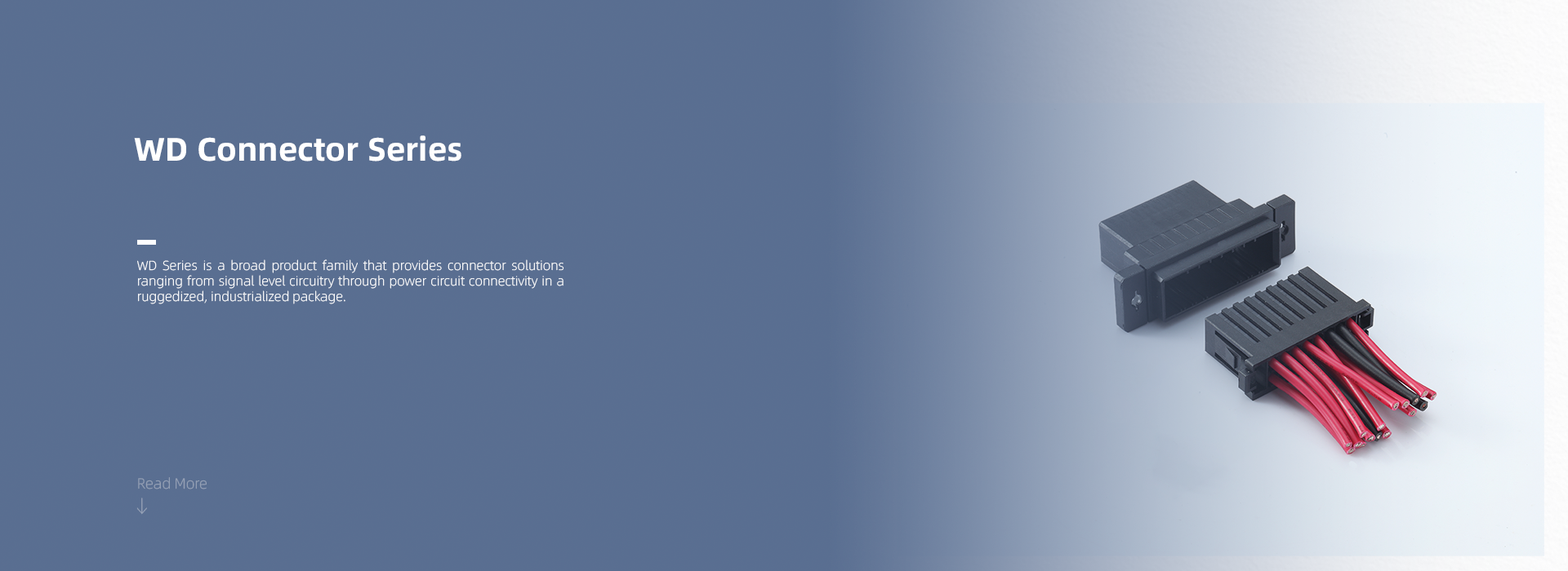 • WD2500系列,2.50mm间距产品,应用于工业自动化、新能源汽车等领域,可提供镀金或镀银,提供灵活的信号和电源解决方案